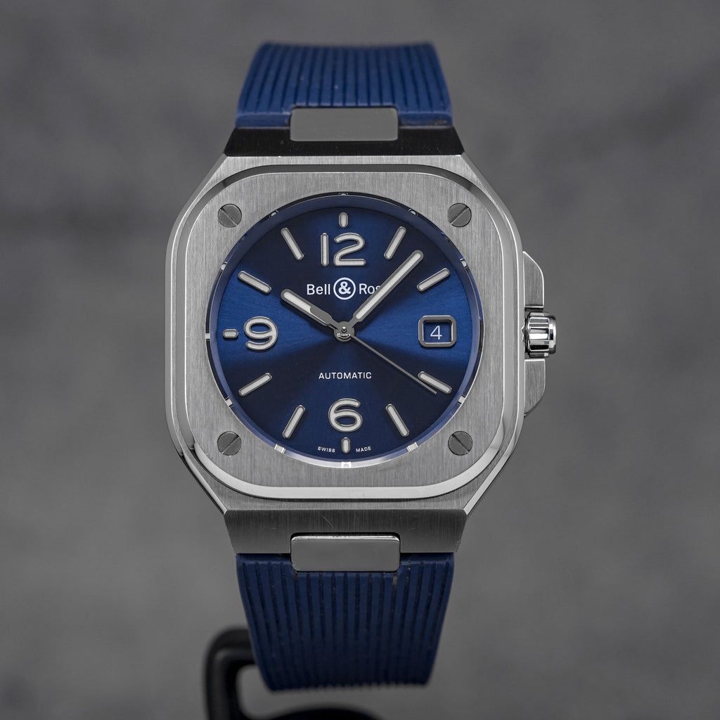 BELL & ROSS BR-05 STEEL 40MM BLUE DIAL RUBBER STRAP