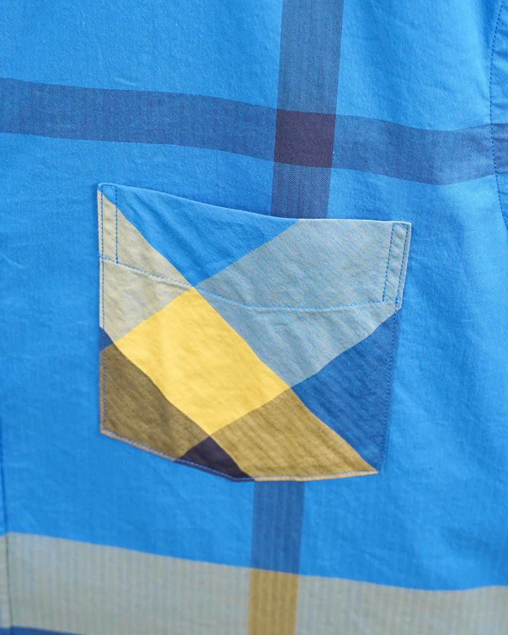 Burberry Patchwork Check Shirt in blue, yellow, and green cotton with a bold mix of oversized and micro checks. A vibrant and contemporary update to the classic Burberry design, perfect for standout casual style.