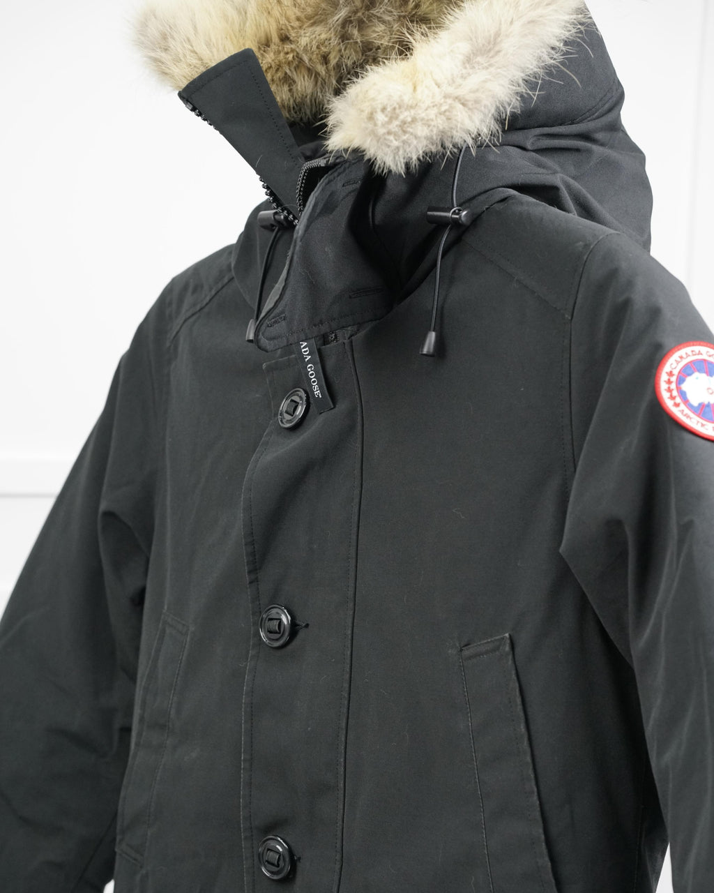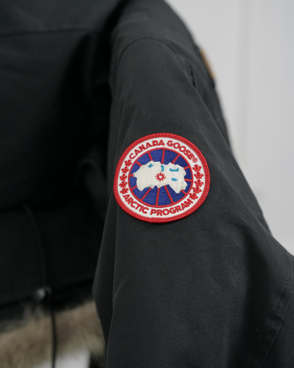 The Canada Goose Brookfield Down Jacket in Black combines rugged warmth with refined utility. Designed with an insulated hood, spacious pockets, and weather-resistant fabric, it delivers dependable cold-weather protection in a classic parka silhouette.