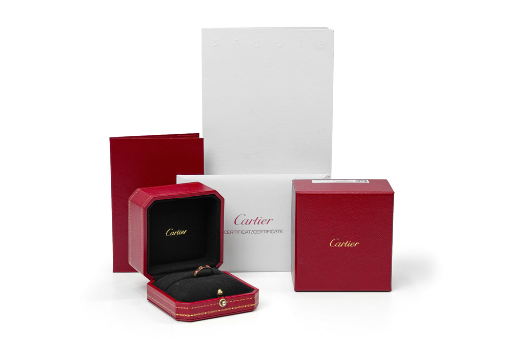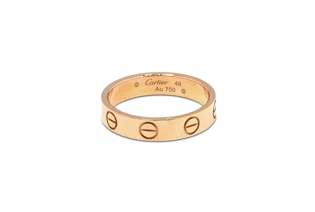 Cartier CRB4085248 Mini Love Ring in 18K pink gold, weighing around 3g. Featuring the iconic screw motif from the LOVE Collection, symbolizing eternal devotion and timeless elegance — a perfect blend of luxury, simplicity, and everlasting romance.