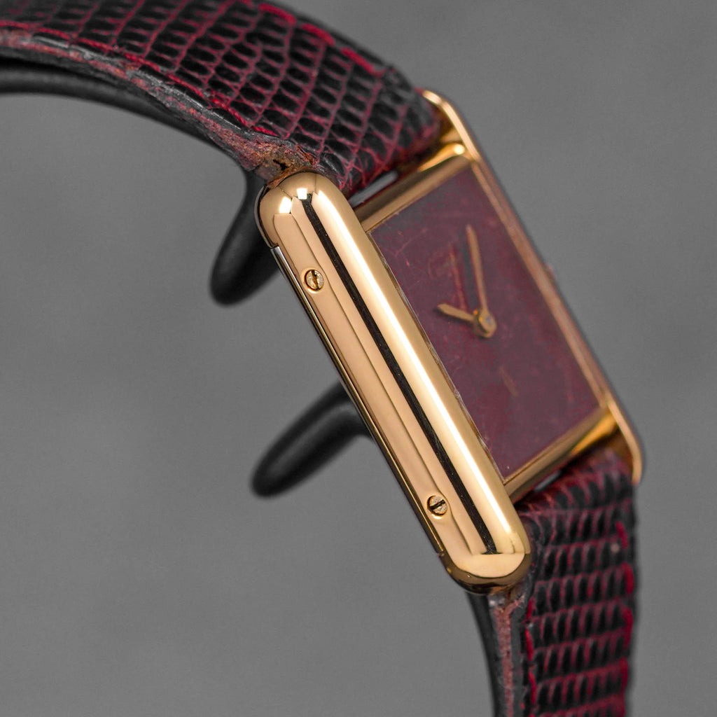 CARTIER TANK MUST VERMEIL YELLOWGOLD-PLATED BURGUNDY DIAL