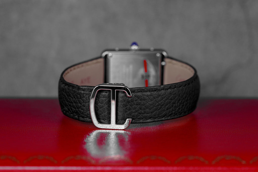 CARTIER TANK SOLO S SILVER DIAL LEATHER STRAP