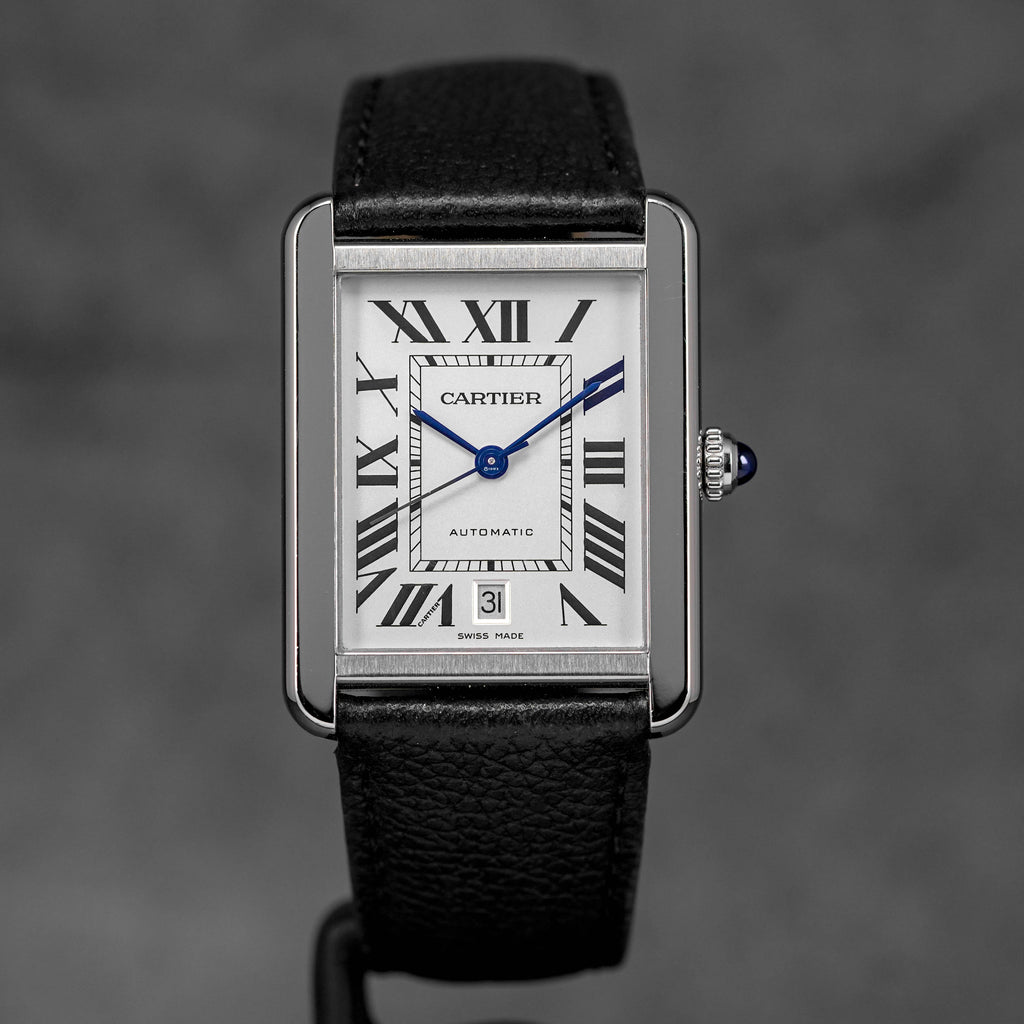 CARTIER TANK SOLO XL SILVER DIAL LEATHER STRAP