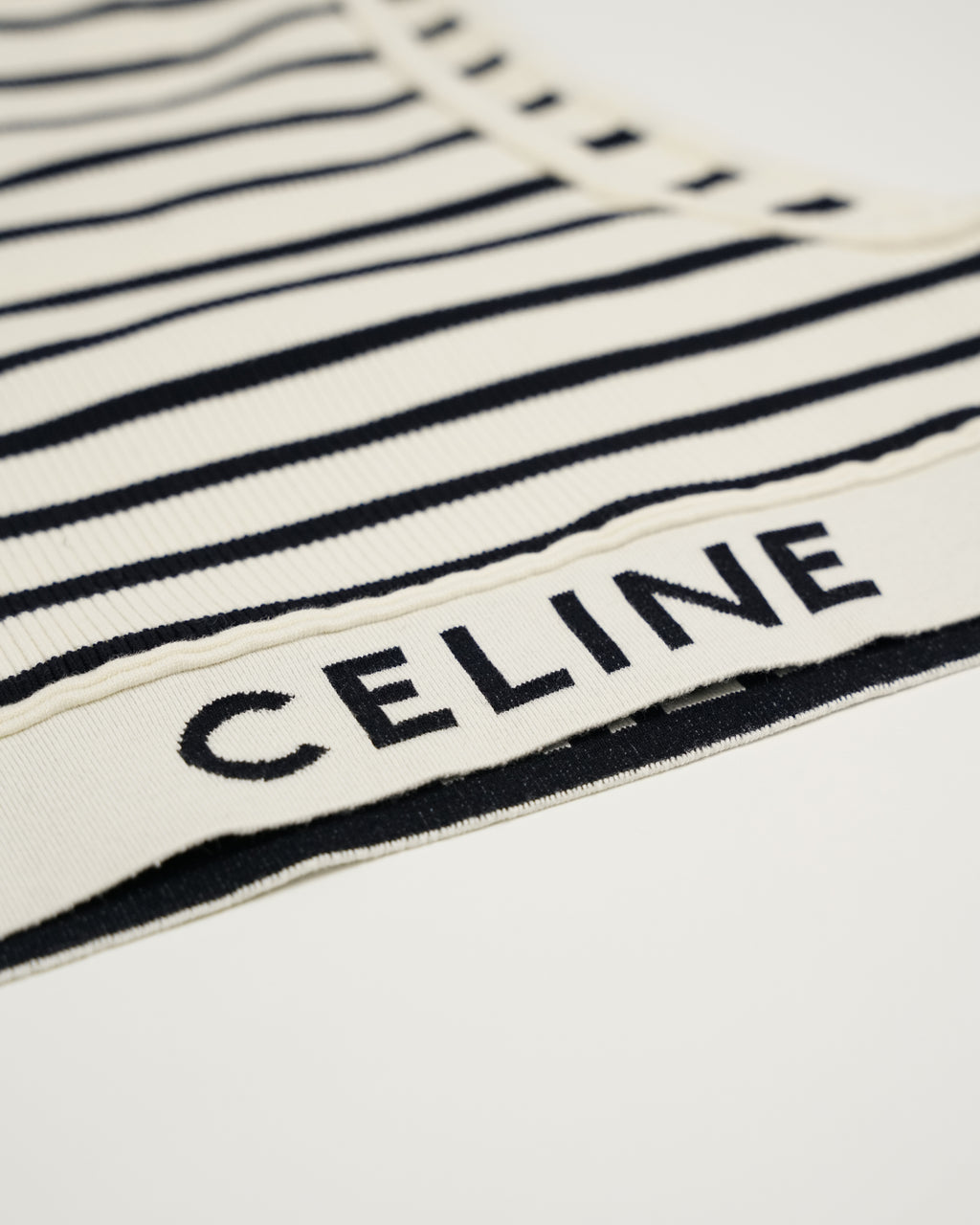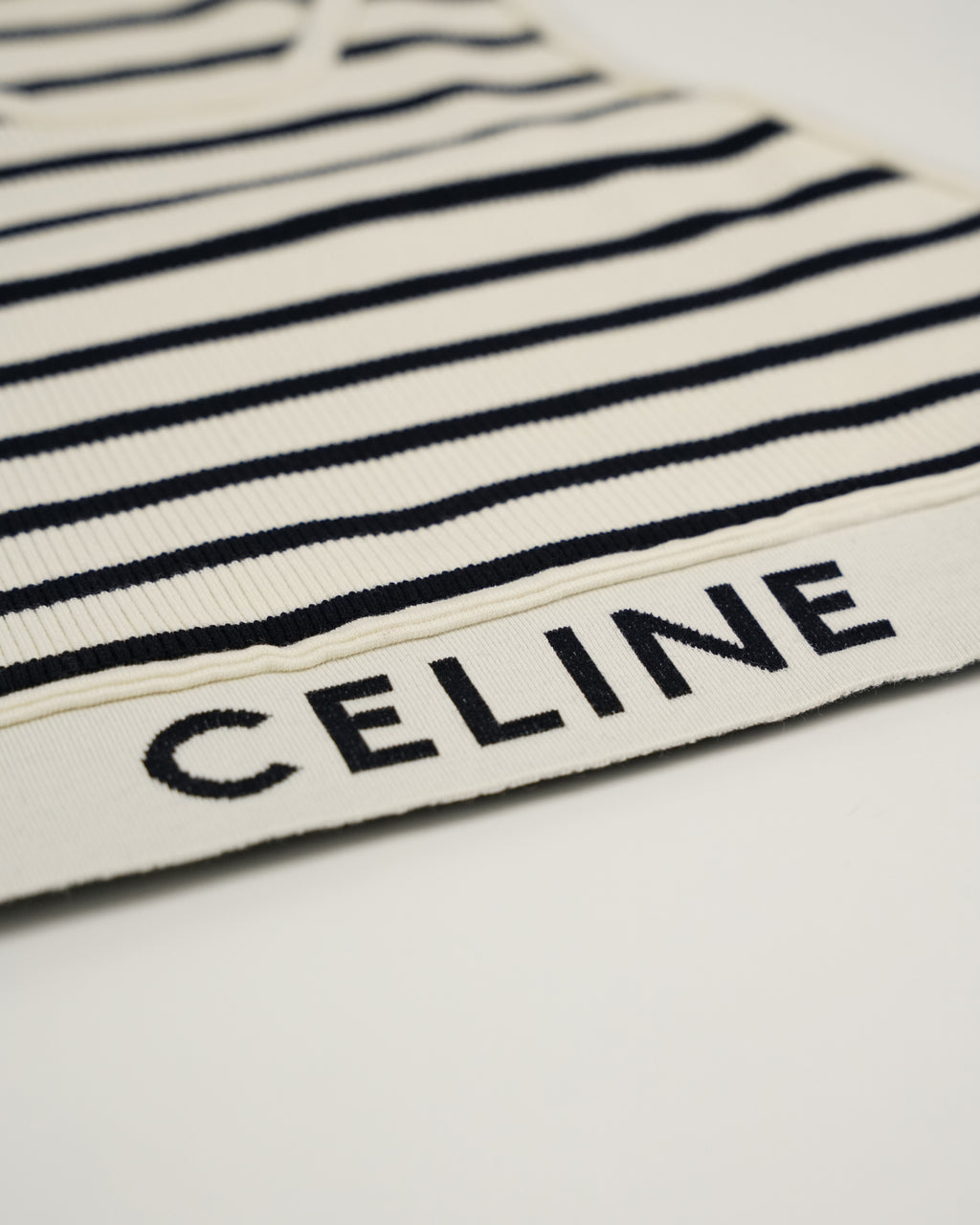 A chic Celine Cotton Tank Top in white with black stripes, crafted from 100% cotton. Excellent condition and perfect for effortless layering. Comes with top only.