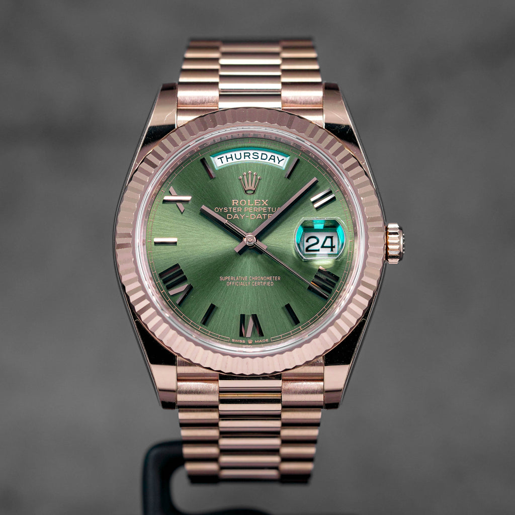 ROLEX DAYDATE 40MM ROSEGOLD OLIVE GREEN DIAL