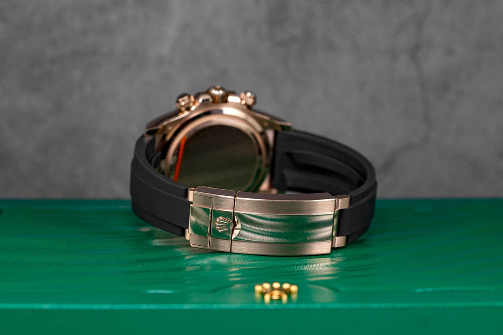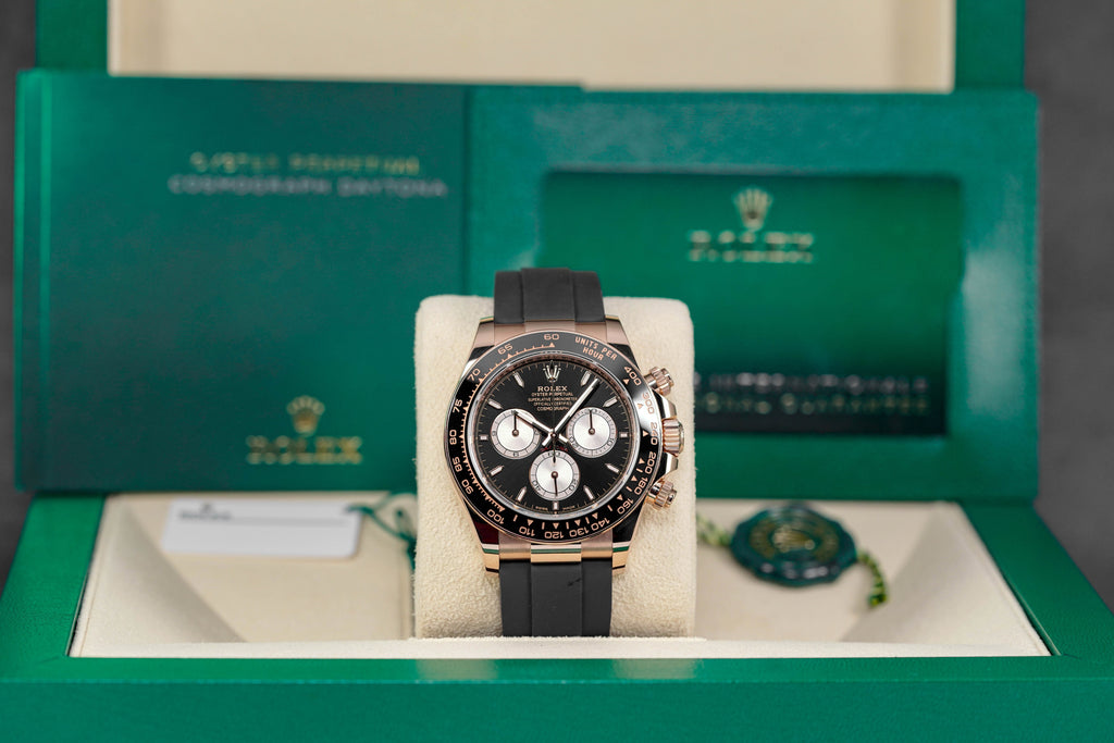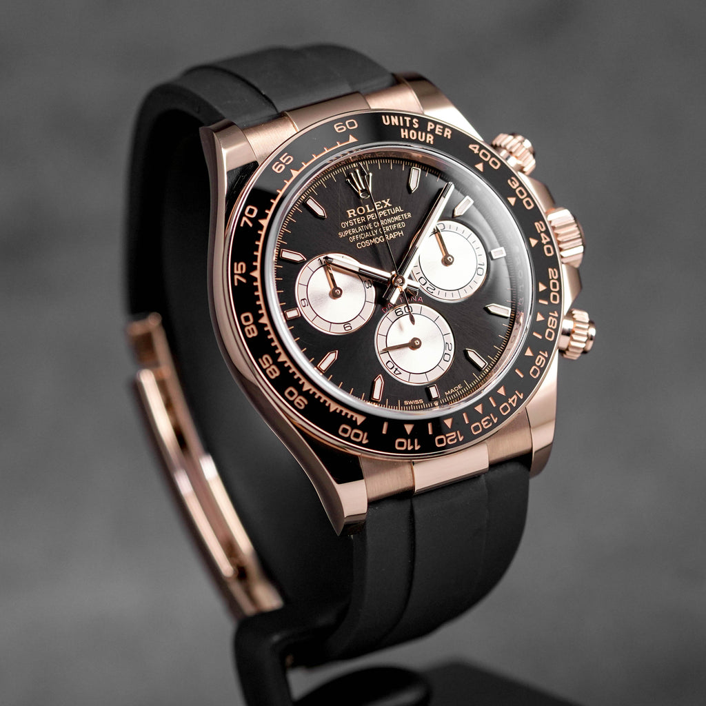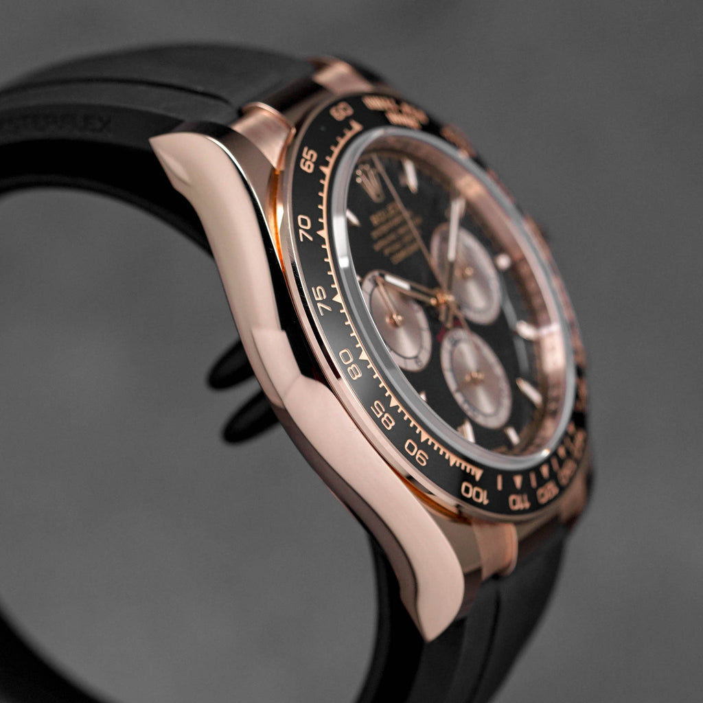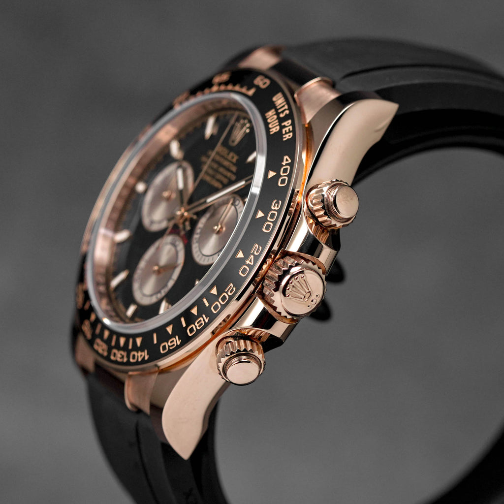 ROLEX DAYTONA OYSTERFLEX ROSEGOLD BLACK DIAL RING BEZEL