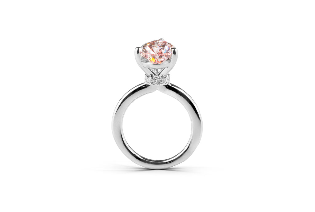 EMMA WHITEGOLD RING 3CT FANCY VIVID PINK PEAR CUT LAB DIAMOND WITH HIDEN HALO