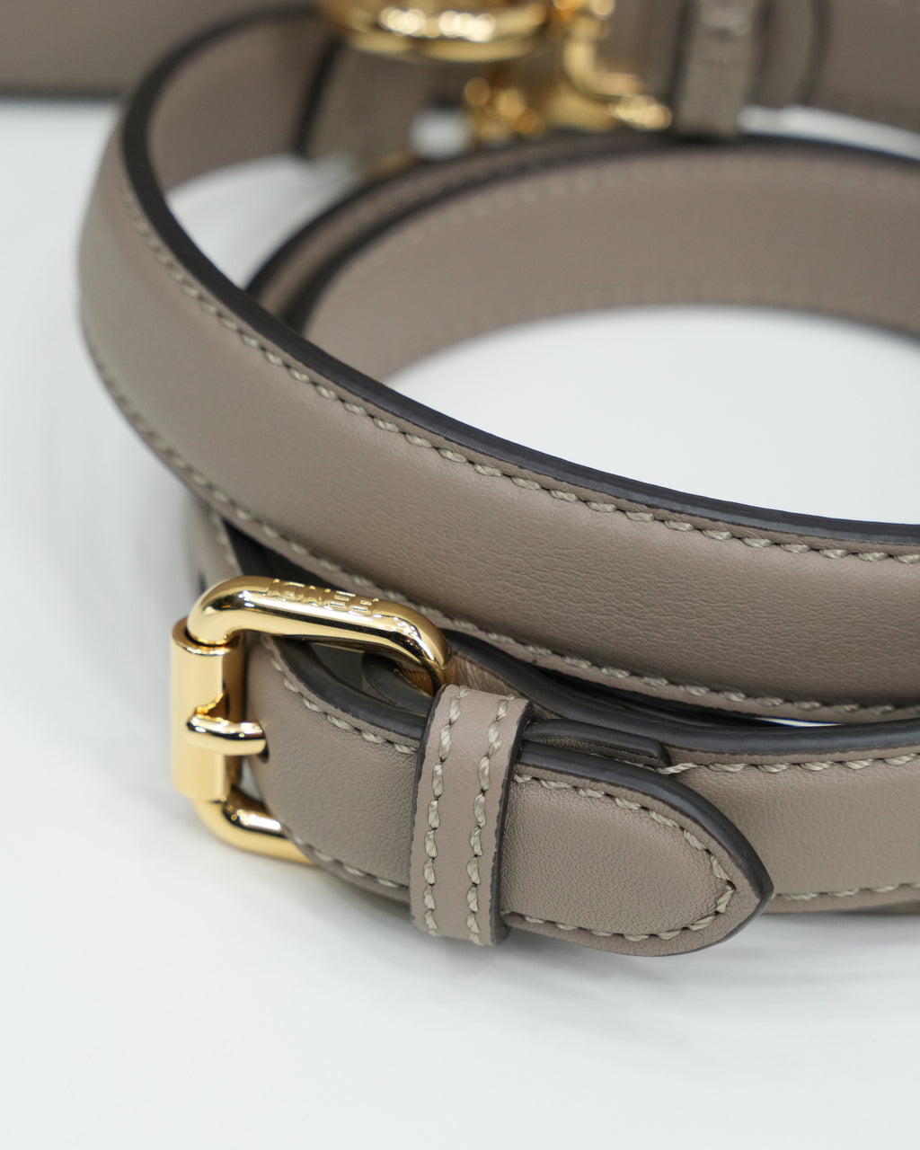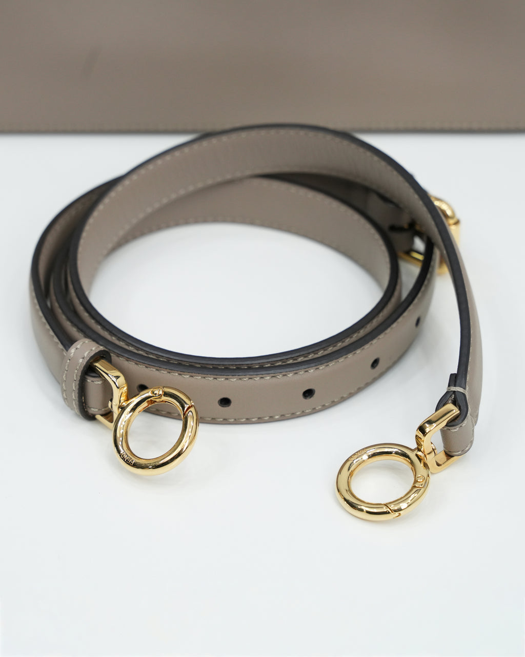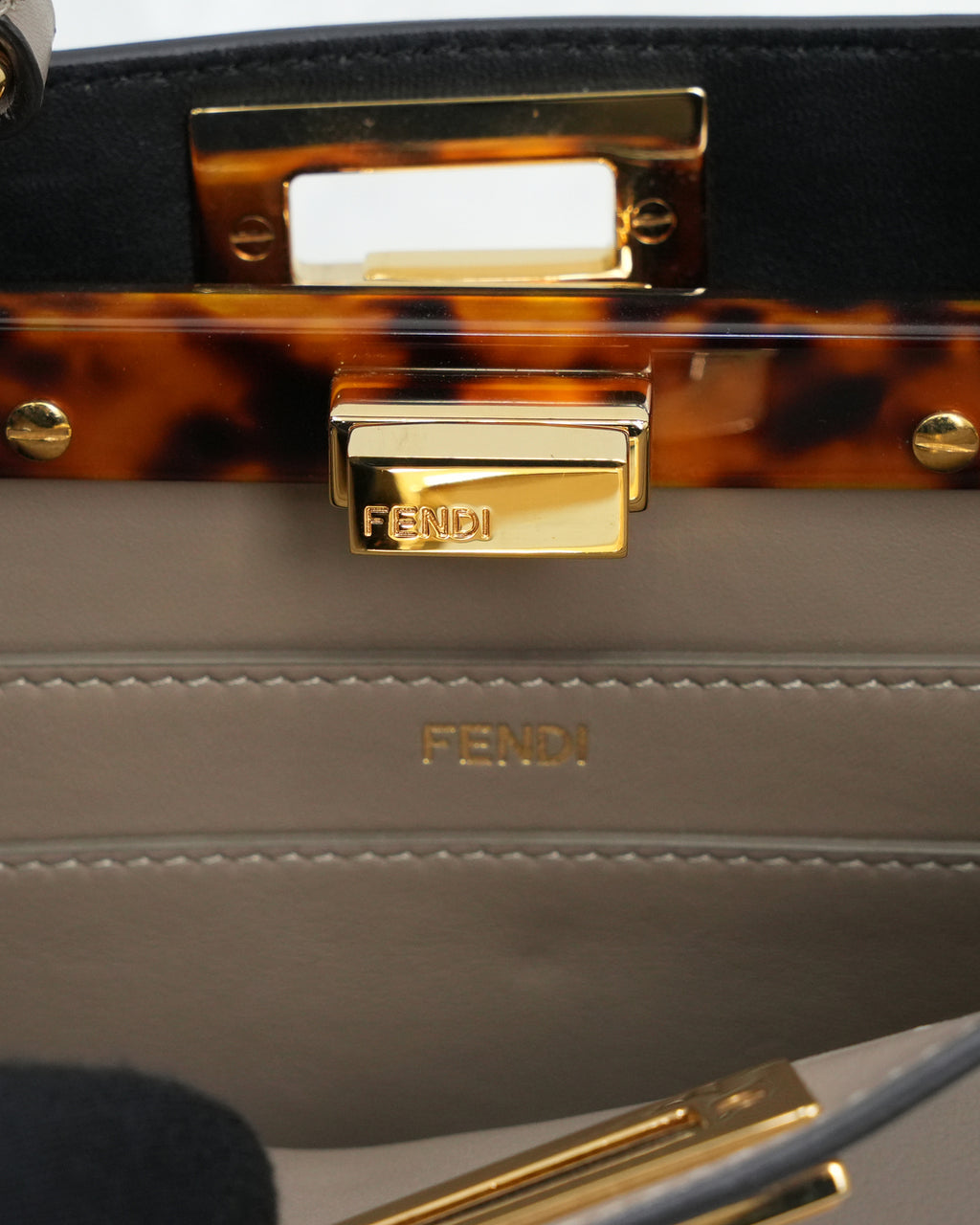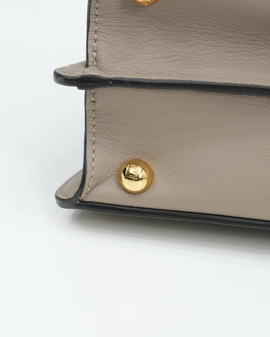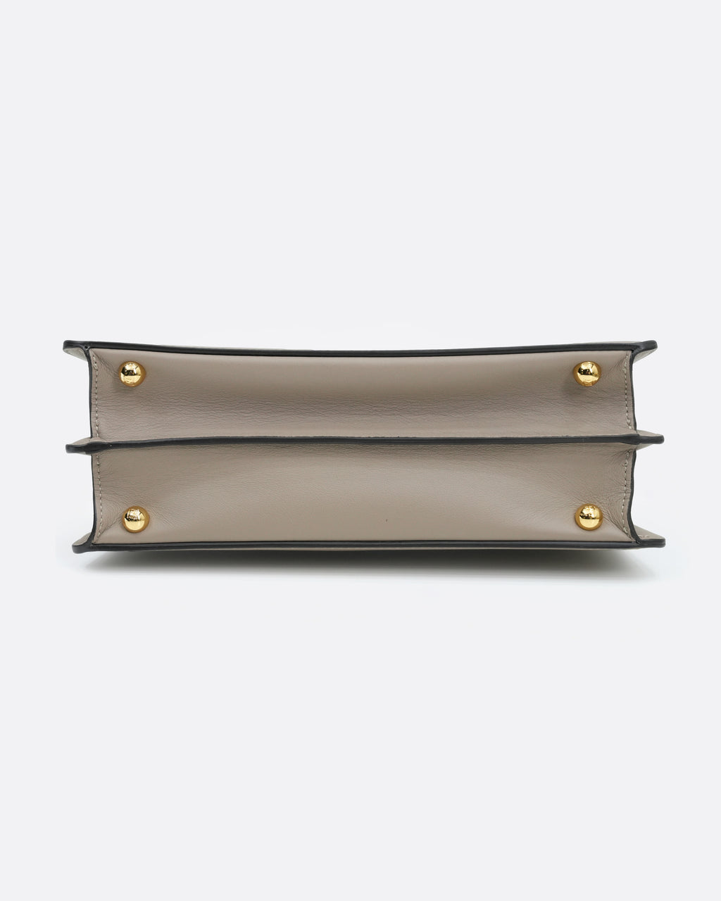 Peekaboo ISeeU Small bag in greige smooth leather with top handle and gold-tone twist lock. Elegant and structured, a refined design for timeless everyday sophistication.