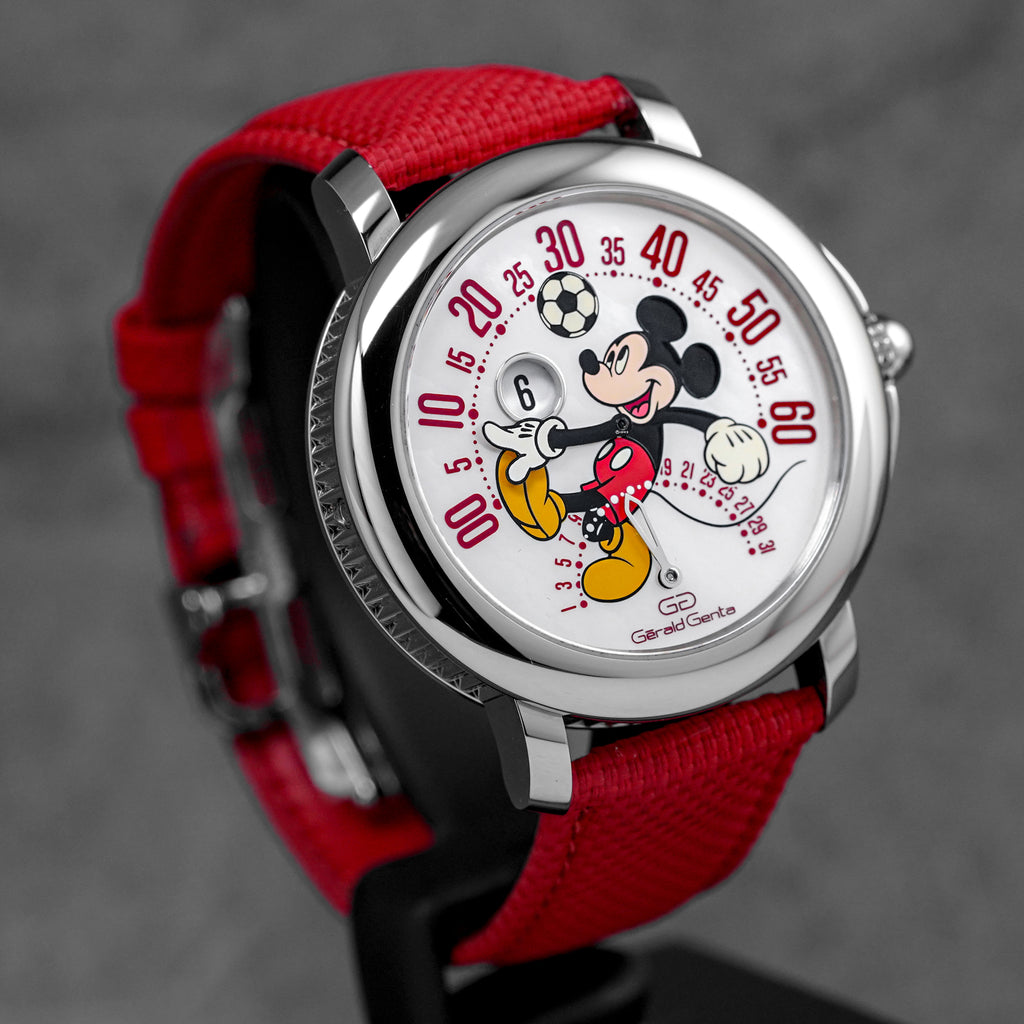 GERALD GENTA ARENA BI-RETROGRADE MICKEY MOUSE PLAYING FOOTBALL MOP DIAL LIMITED EDITION