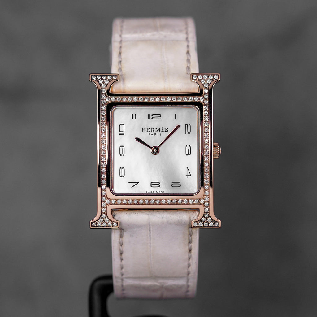 HERMES HEURE H LARGE DIAMOND-SET ROSEGOLD MOP DIAL