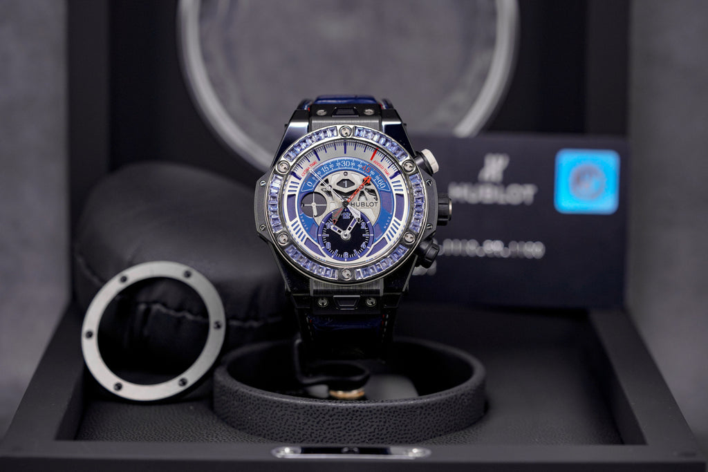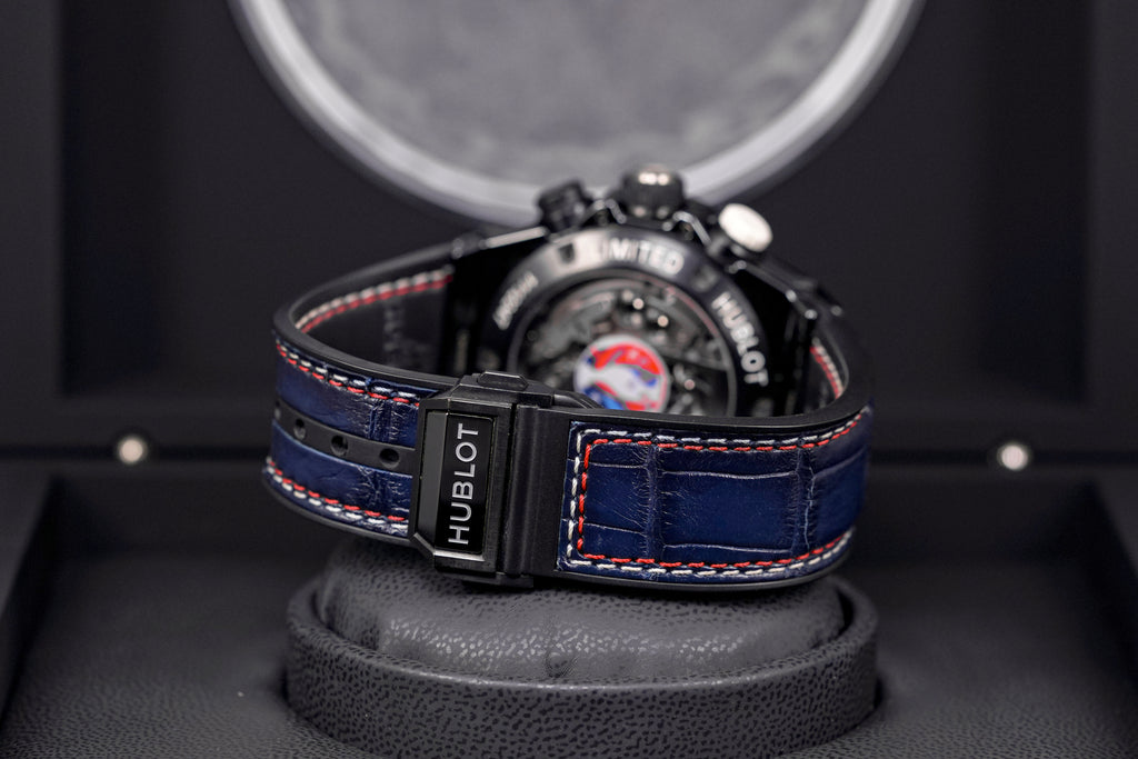 HUBLOT BIG BANG UNICO 45MM CHRONOGRAPH RETROGRADE BLACK CERAMIC CUSTOM SAPPHIRE BEZEL 'UEFA EURO 2016' LIMITED EDITION