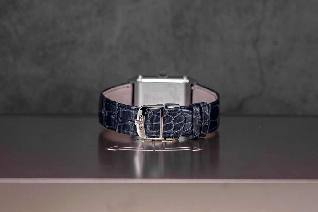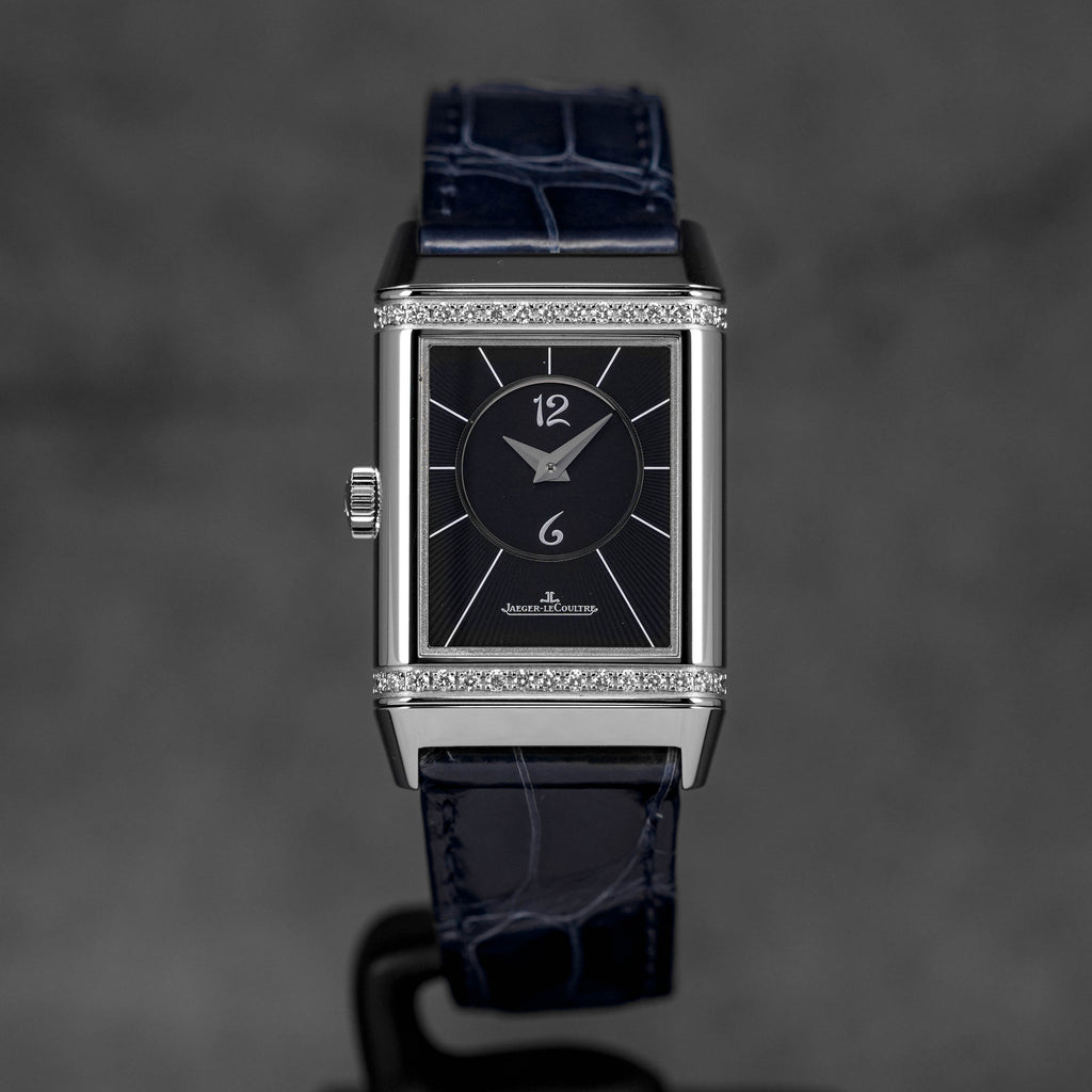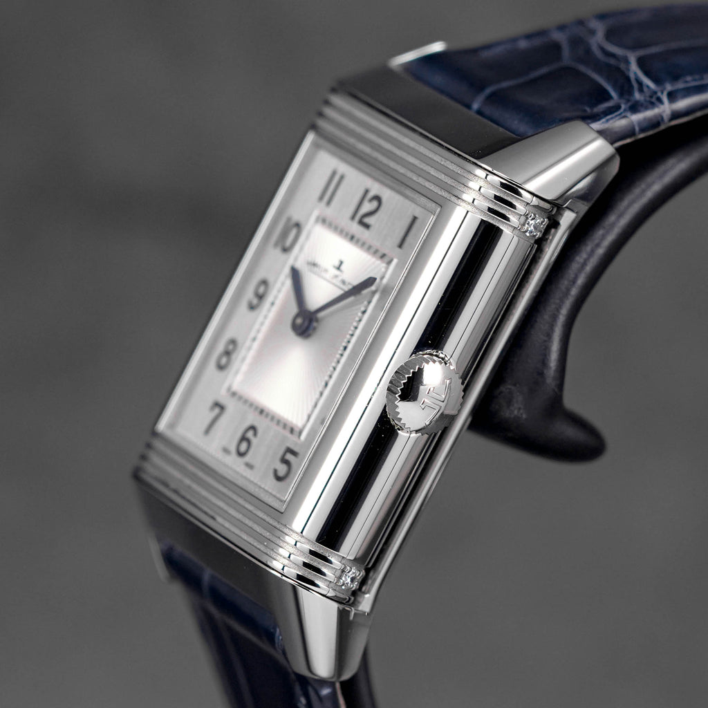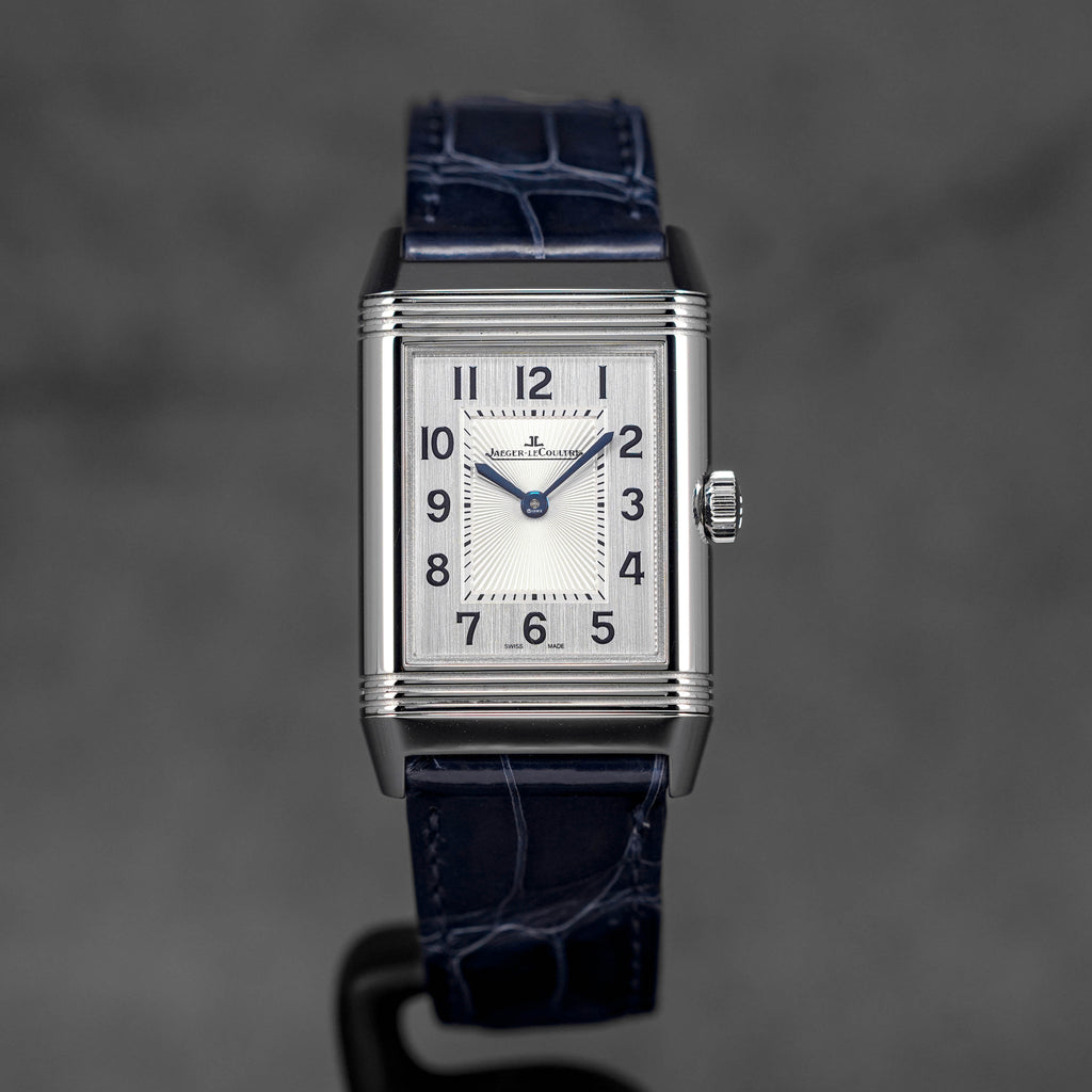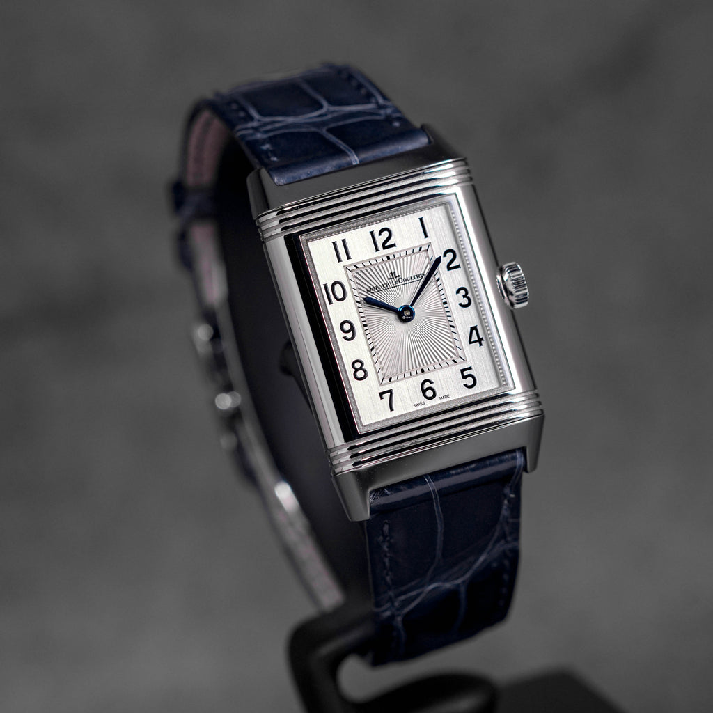JAEGER LECOULTRE REVERSO CLASSIC DUETTO SILVER-BLACK DIAL LEATHER STRAP