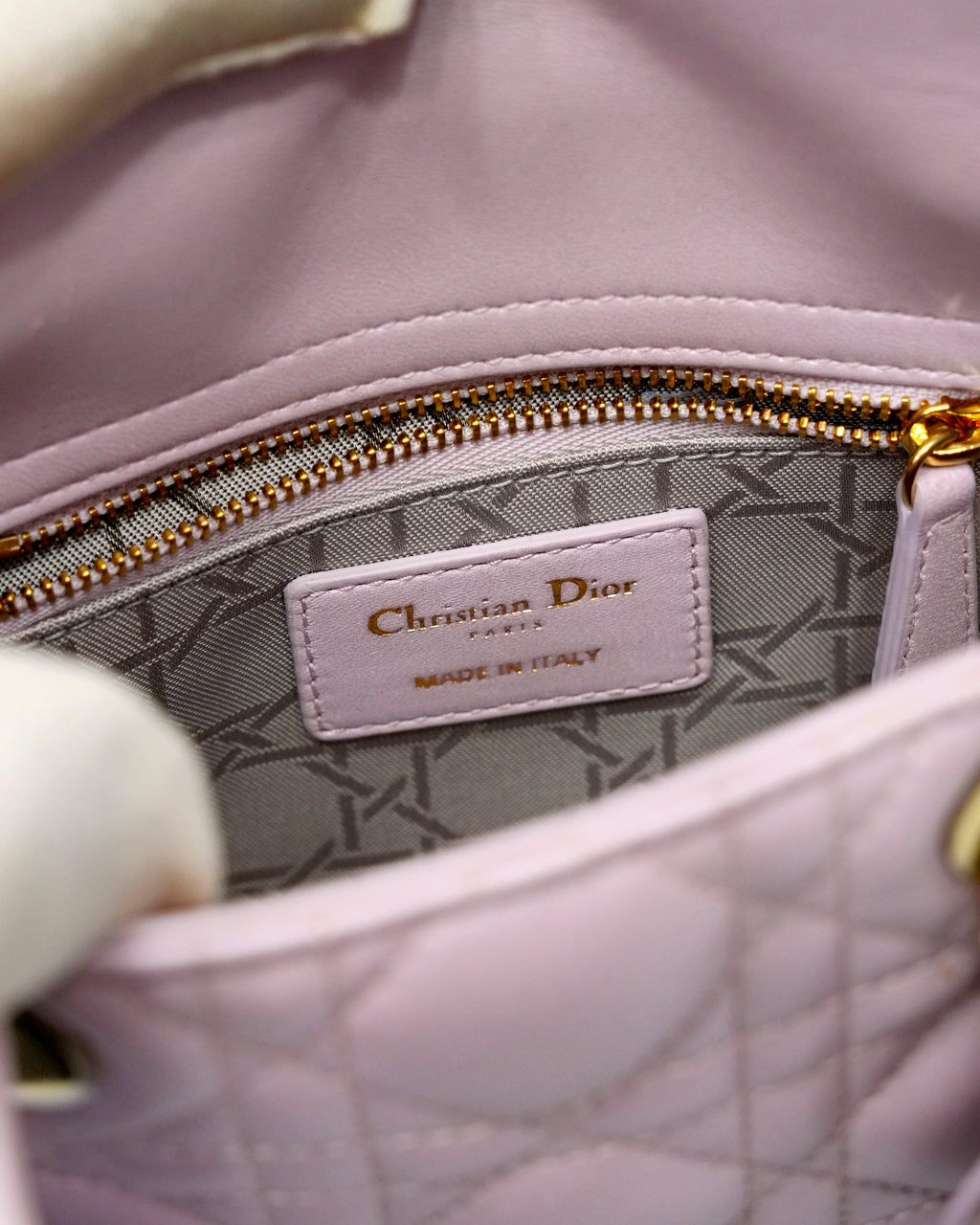 A timeless icon of elegance, the Lady Dior Mini in Pink Lotus patent leather with light gold hardware exudes sophistication. Compact yet striking, it’s a statement piece perfect for both day and evening looks.