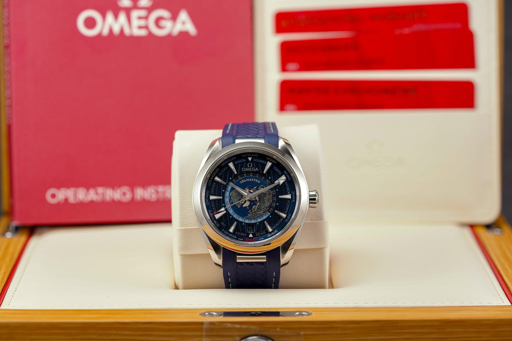 OMEGA SEAMASTER AQUA TERRA 150M WORLDTIMER BLUE RUBBER STRAP