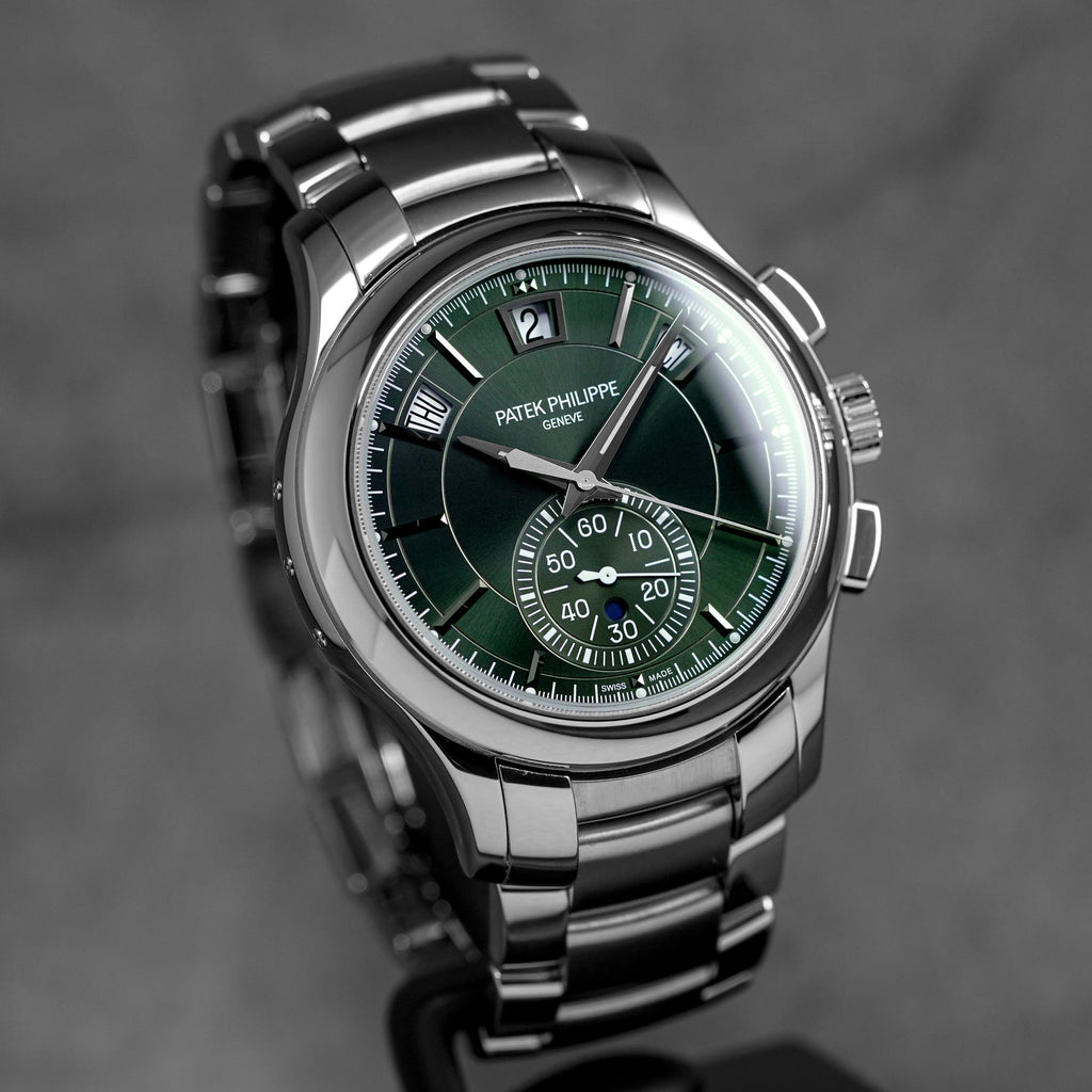 PATEK PHILIPPE COMPLICATIONS 5905/1A ANNUAL CALENDAR CHRONOGRAPH OLIVE GREEN DIAL