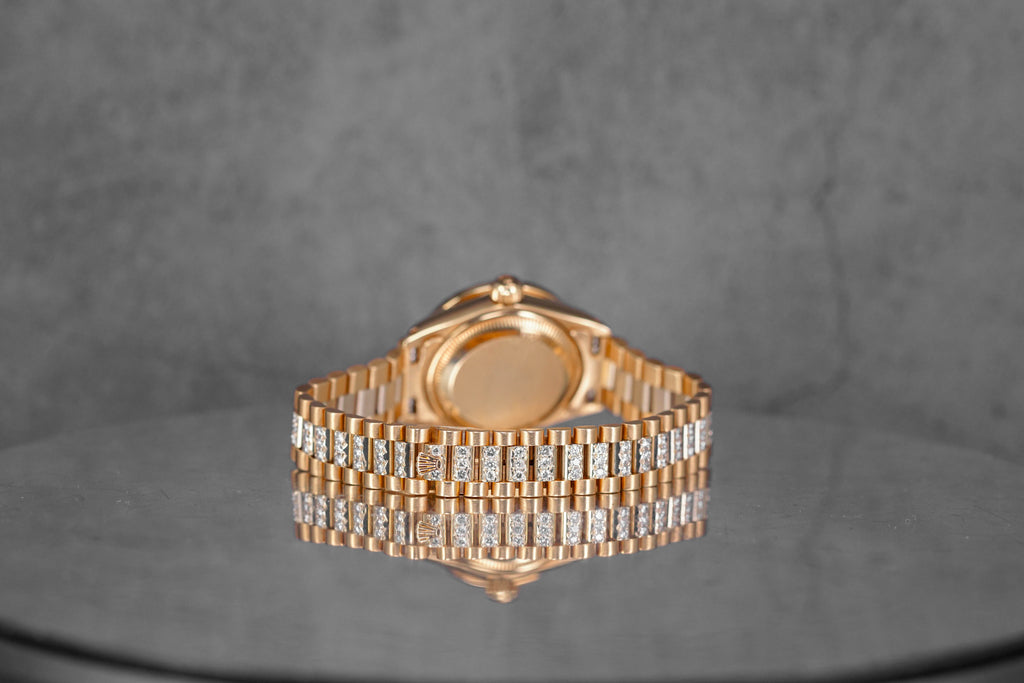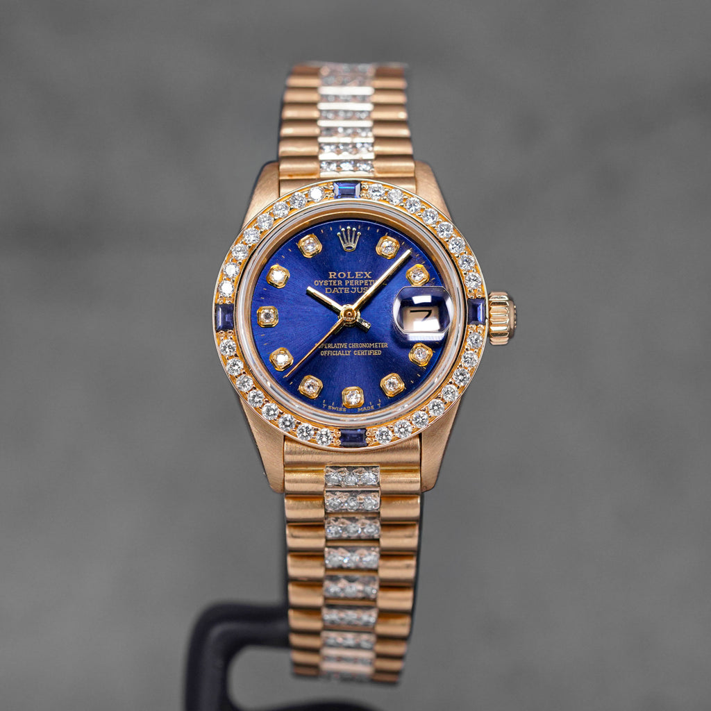 ROLEX DATEJUST 26MM YELLOWGOLD BLUE DIAMOND DIAL DIAMOND SAPPHIRE BEZEL