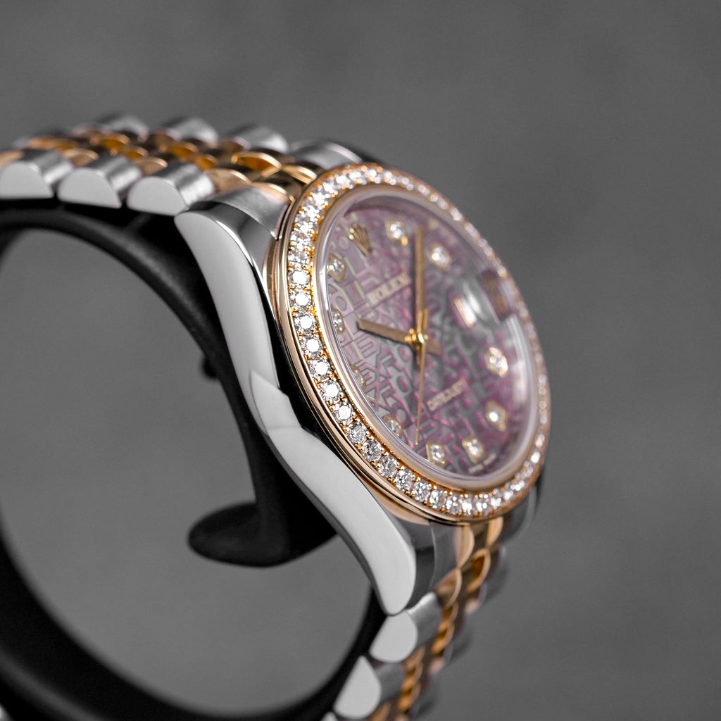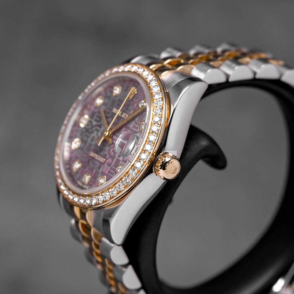 ROLEX DATEJUST 31MM TWOTONE YELLOWGOLD MOP BLACK COMPUTERIZED DIAMOND DIAL DIAMOND RING BEZEL