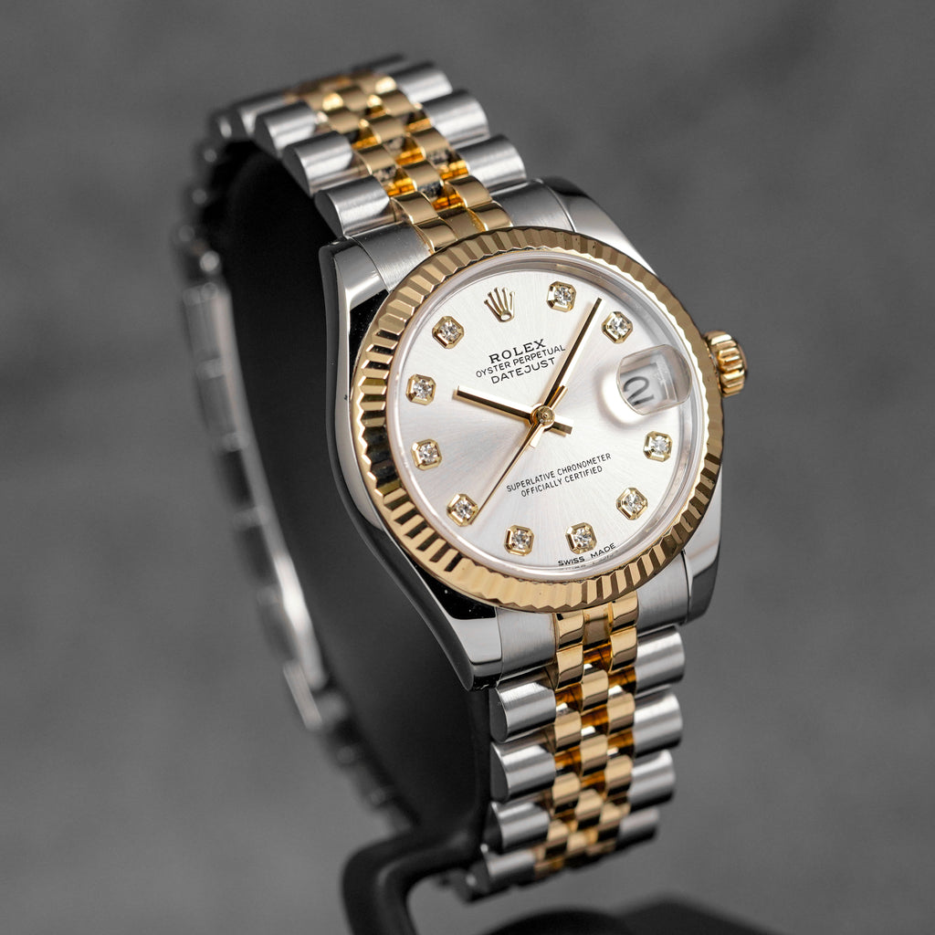 ROLEX DATEJUST 31MM TWOTONE YELLOWGOLD SILVER DIAMOND DIAL