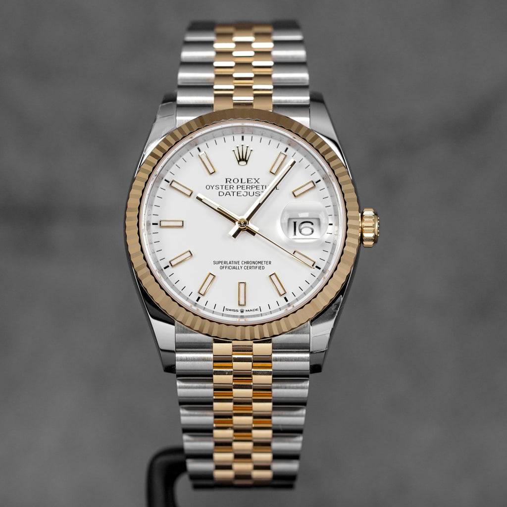 ROLEX DATEJUST 36MM TWOTONE YELLOWGOLD WHITE DIAL