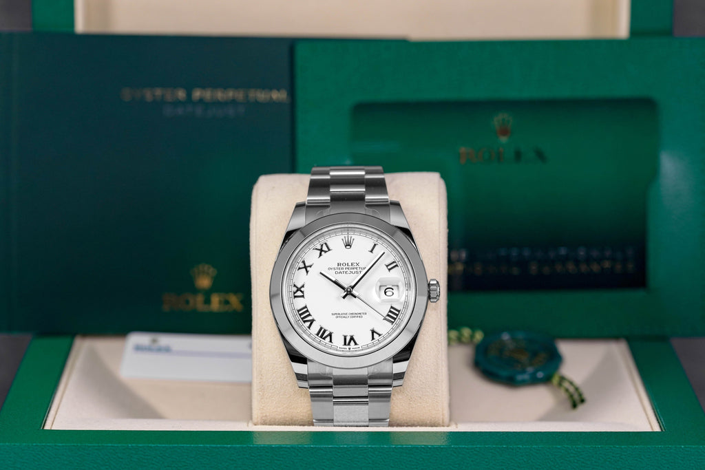ROLEX DATEJUST 41MM WHITE ROMAN DIAL