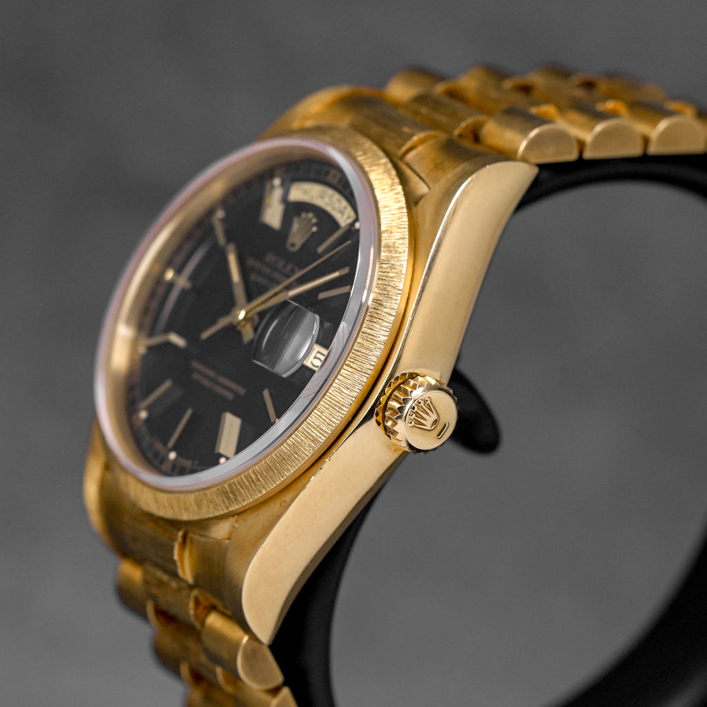 ROLEX DAYDATE 36MM 18078 YELLOWGOLD BLACK DIAL BARK FINISH