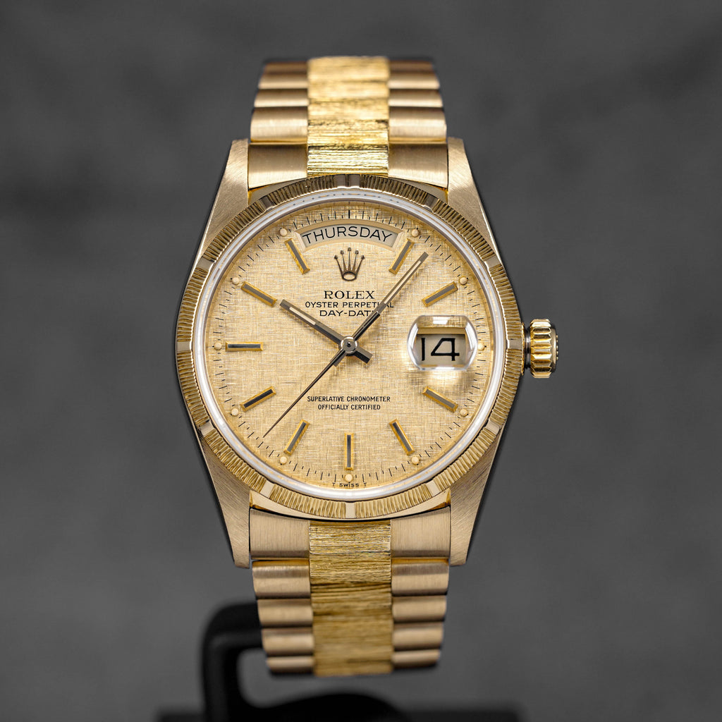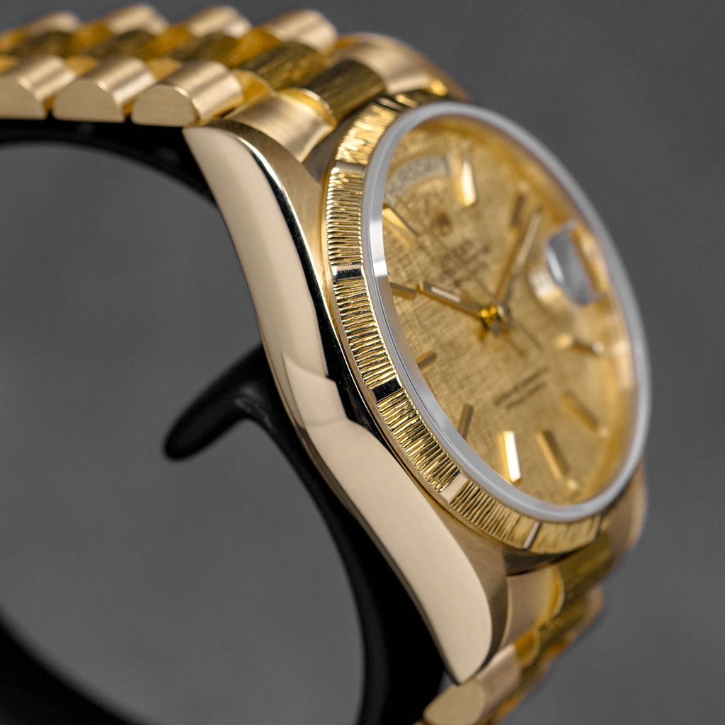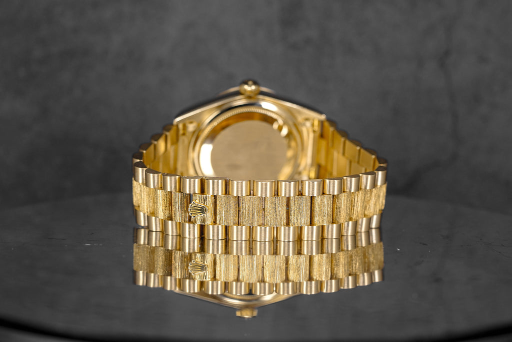 ROLEX DAYDATE 36MM 18078 YELLOWGOLD CHAMPAGNE DIAL BARK FINISH