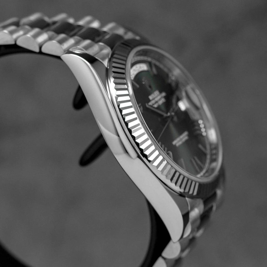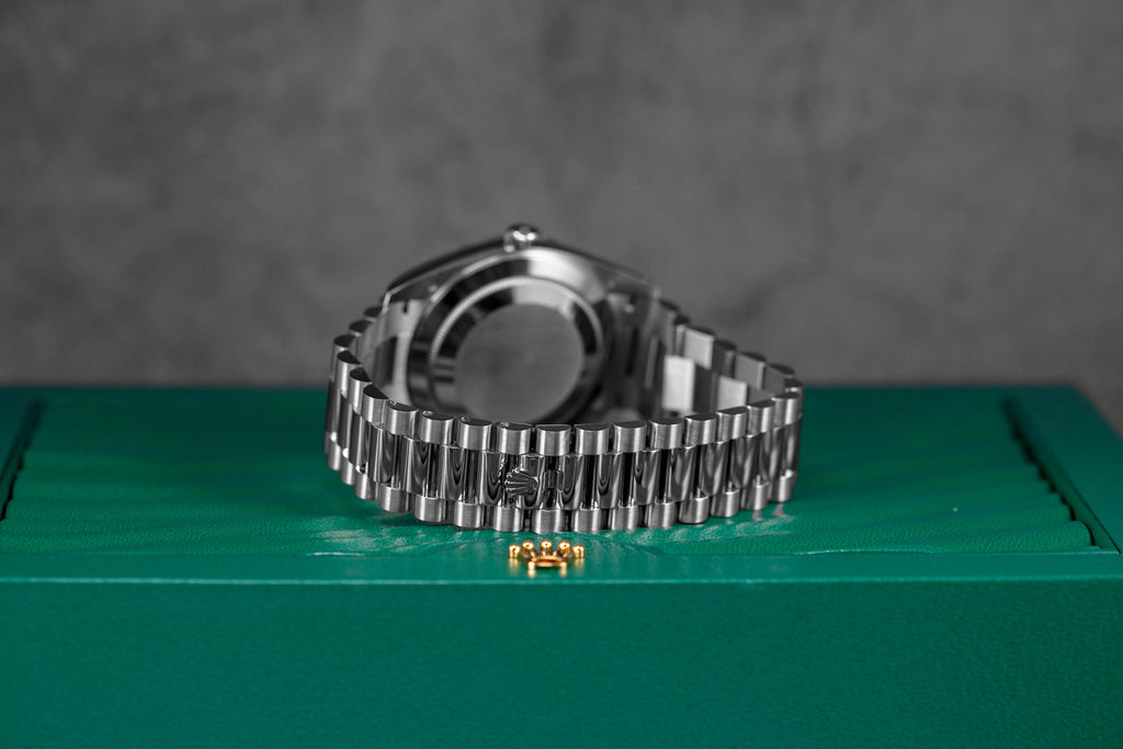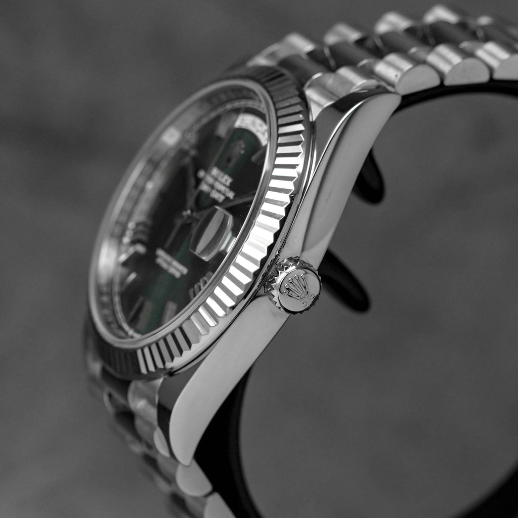ROLEX DAYDATE 40MM WHITEGOLD OLIVE GREEN ROMAN DIAL