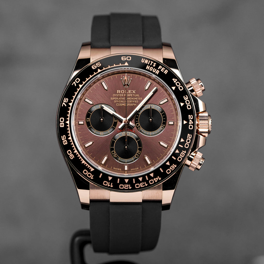 ROLEX DAYTONA OYSTERFLEX ROSEGOLD CHOCO DIAL RING BEZEL