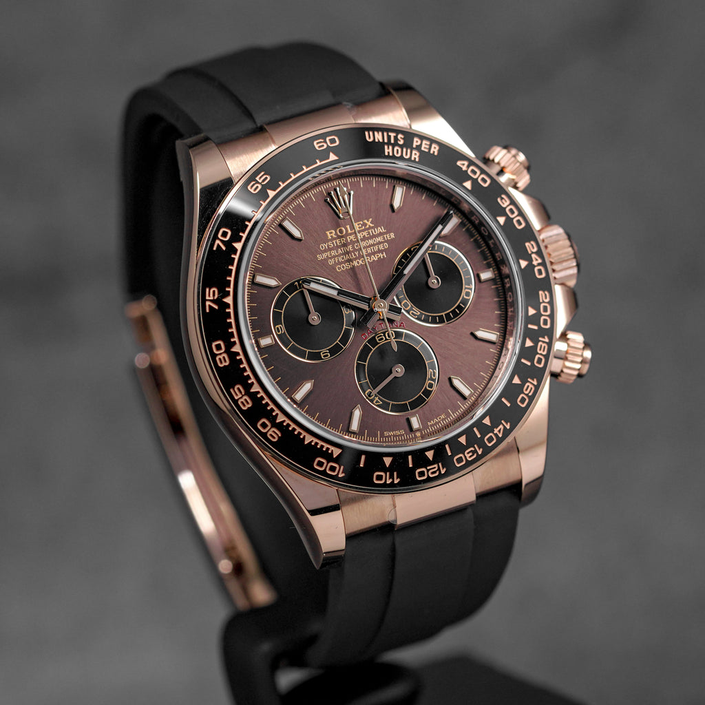 ROLEX DAYTONA OYSTERFLEX ROSEGOLD CHOCO DIAL RING BEZEL