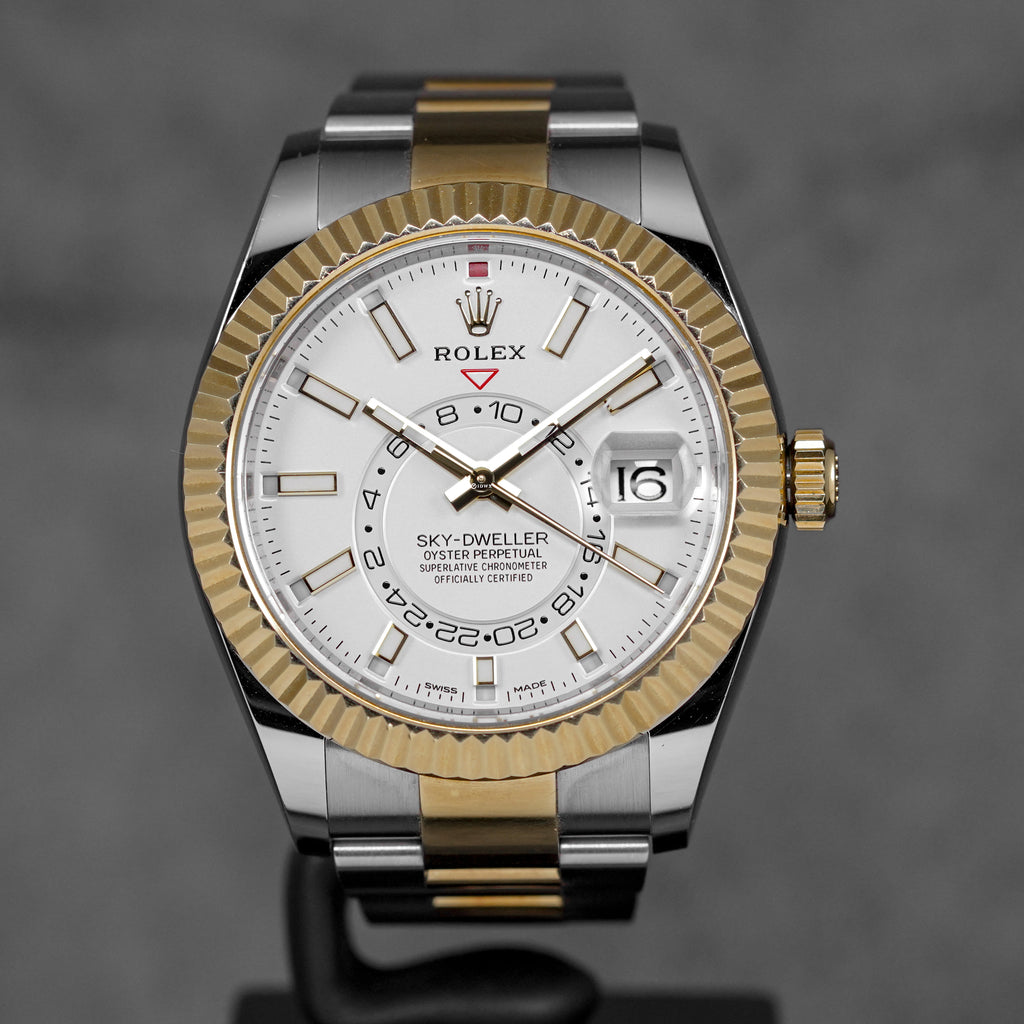 ROLEX SKY-DWELLER TWOTONE YELLOWGOLD WHITE DIAL