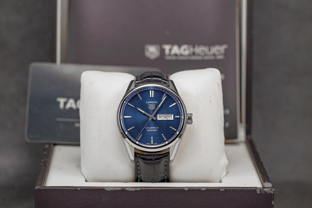 TAG HEUER CARRERA CALIBRE 5 DAY-DATE BLUE DIAL