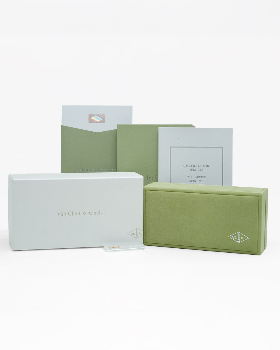The Van Cleef & Arpels Vintage Alhambra 5-Motifs Mother of Pearl Bracelet embodies timeless elegance with the Maison’s iconic clover design, symbolizing luck and harmony. Crafted in lustrous gold, each motif is adorned with iridescent Mother of Pearl, reflecting soft, natural luster. This piece has been resized and includes an extra chain for flexibility, making it a versatile and refined addition to any jewelry collection.